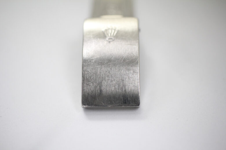 当初の表面処理を再現するためヘアライン(筋目)を入れていきます。表面処理にも種類があり、時計の仕上げで多いのが鏡面、ヘアライン、梨地仕上げになります。